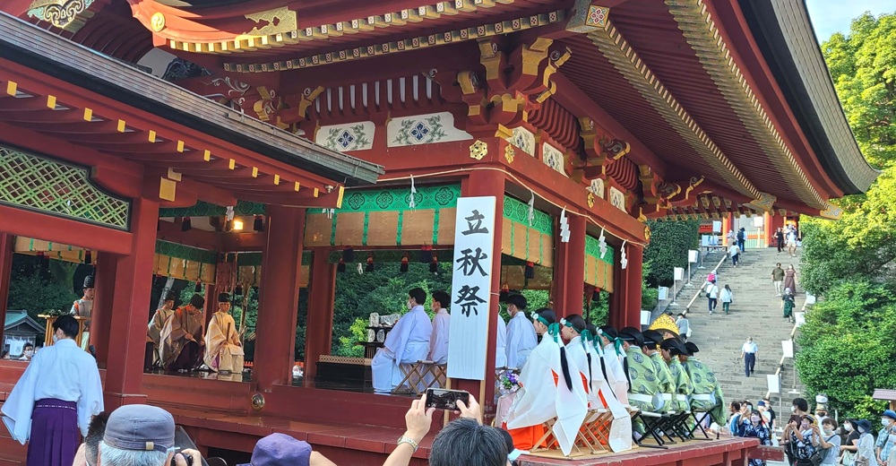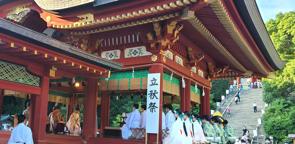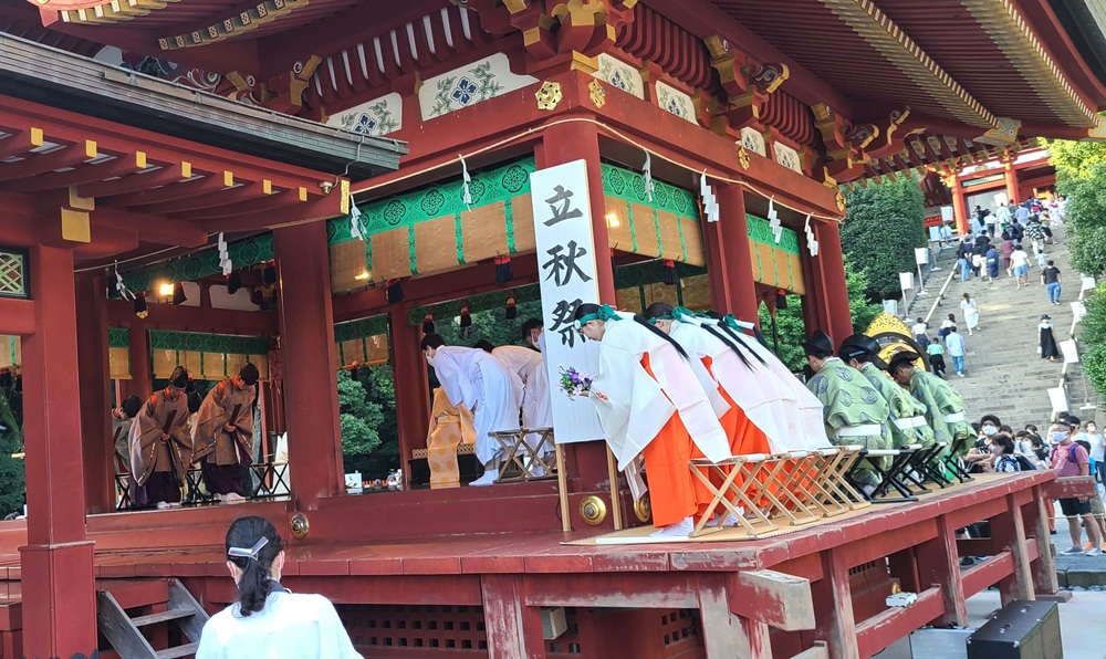 The Risshū Festival at Tsurugaoka Hachimangū is a ceremony that began in 1950 to give thanks for safety during the summer and to report to the deities the coming of the fruitful autumn.