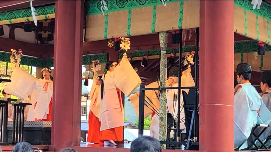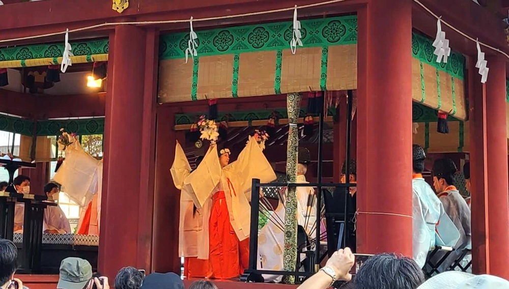 After the chief priest’s recitation of prayers, a sacred dance performed by shrine maidens (miko) will take place.