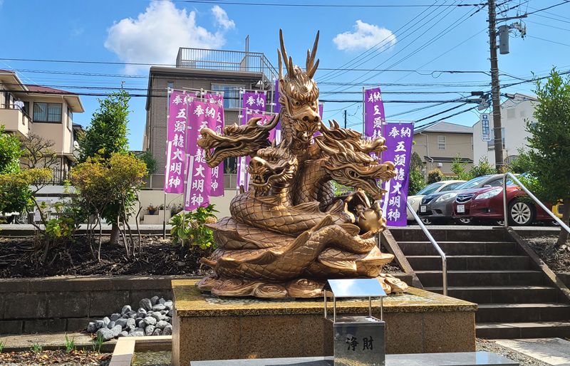 龍口明神社は、元は藤沢の龍口寺の隣にあったそうですが、氏子の希望もあり昭和53年に現在の地に移されたそうです。縁起によれば、江の島弁財天の霊感に降伏した、五頭龍を祀ったのが始まりとされます。(出典:吉田茂穂『鎌倉の神社 小事典』かまくら春秋社、2002)