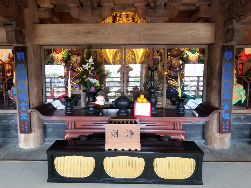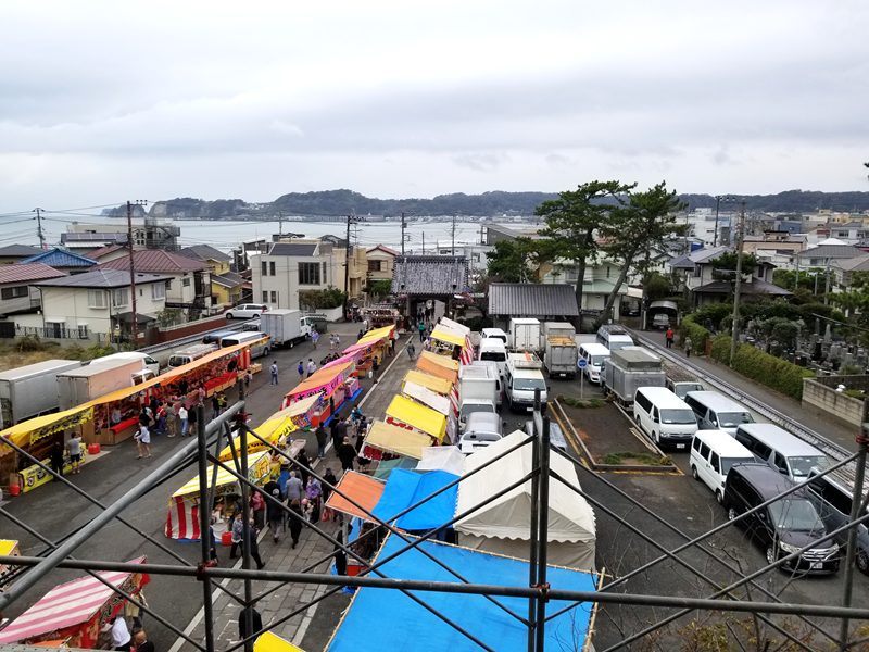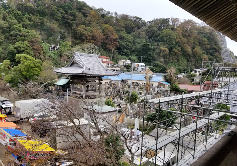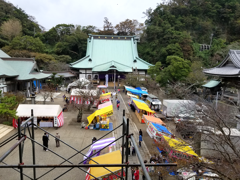 山門楼上には釈迦三尊、四天王、十六羅漢が安置されています。また、山門はぐるりと一周できますので、材木座海岸、由比ガ浜、遥かには江ノ島、富士山を一望できます。