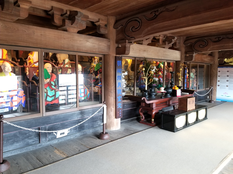 On the upper level, you’ll find statues of the Shaka Triad, the Four Heavenly Kings, and the Sixteen Arhats.