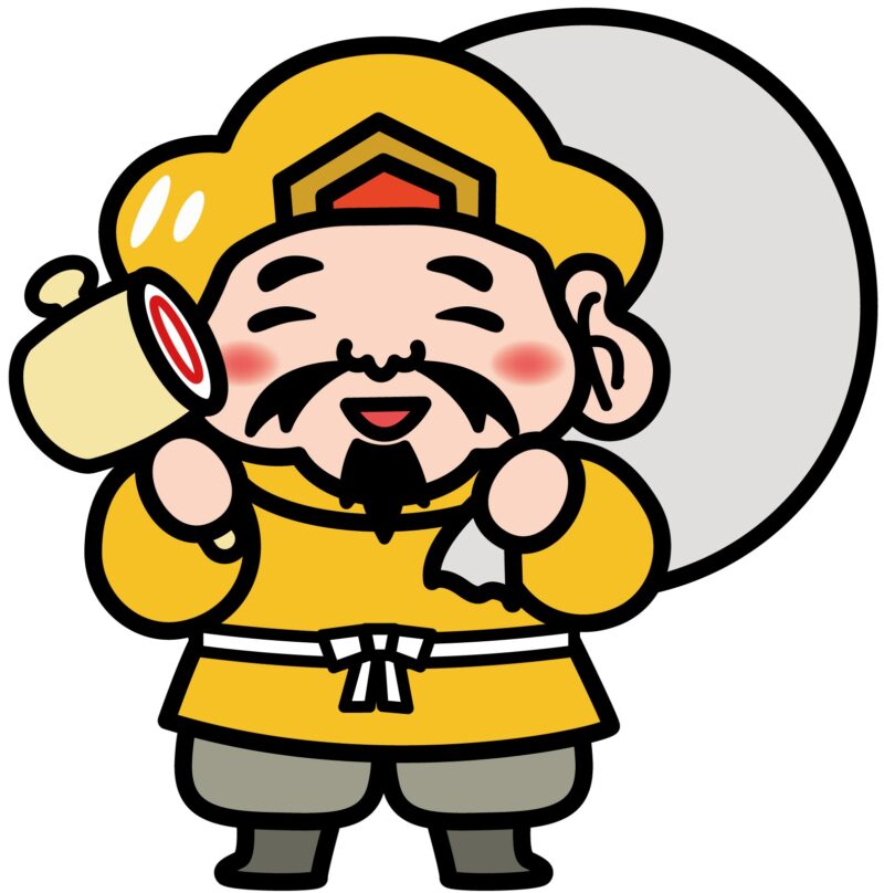 大黒天は、『七福神の一つで、福徳や財宝を与える神とされています。その像は、狩衣のような服を着て、まるく低いくくり頭巾をかぶり、左肩に大きな袋を背負い、右手には打出の小槌を持ち、米俵の上にいる。大国主命を本地とする説が行なわれ、甲子の日をその祭日とし、二股大根をそなえる習慣がある。』(出典:精選版 日本国語大辞典)