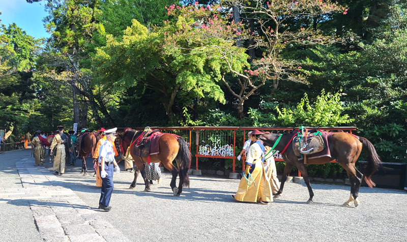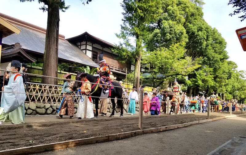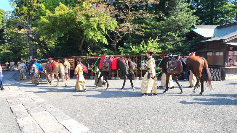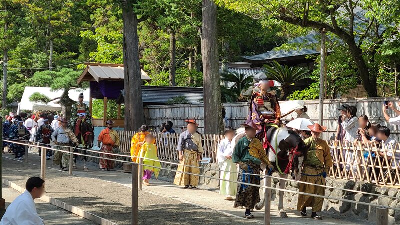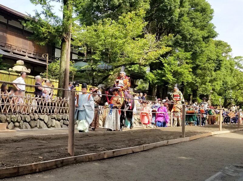 古式にのっとった衣装で馬に乗っての移動も壮観です。