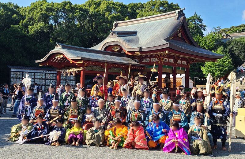 15時過ぎ流鏑馬神事は終了です。お馬さんも帰って行きます、最後はみんなで集合写真。