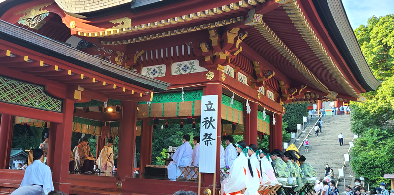 The Risshū Festival at Tsurugaoka Hachimangū is a ceremony that began in 1950 to give thanks for safety during the summer and to report to the deities the coming of the fruitful autumn.