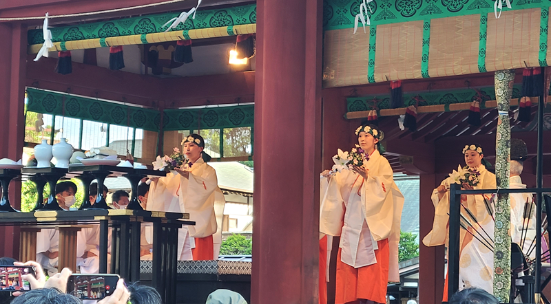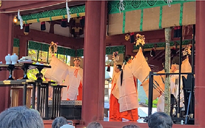 After the chief priest’s recitation of prayers, a sacred dance performed by shrine maidens (miko) will take place.
