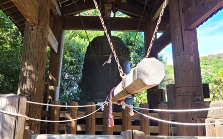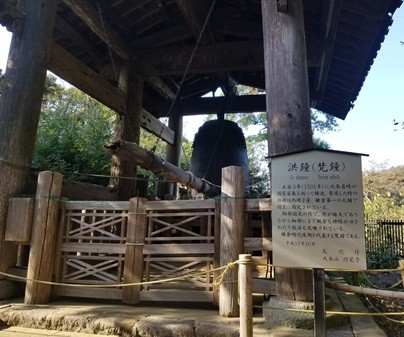 円覚寺の国宝洪鐘(おおがね)ですが、2019年の写真と2023年の写真を見比べますと、鐘をつく棒(「しゅもく」というそうで、撞木・橦木・鐘木と書くそうです。出典:円龍寺かっけいブログより)が新しくなってますね。
