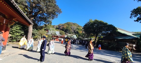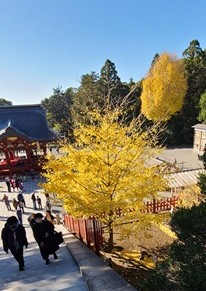 鶴岡八幡宮のイチョウも色づいています。2010年に倒木してから今年で15年目の新しいイチョウですね。年々大きくなっていくのを見るのも楽しみです。