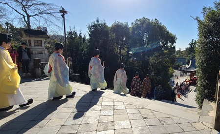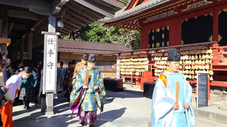 祭事自体は、本宮で実施されますので、中に入って見学することは出来ません。その間30分以上待っていることになりますね。