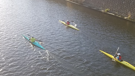 藤沢駅を11時過ぎに出発、江ノ電沿いをてくてく歩きます。途中線路沿いを歩けないので、少し遠回りをしたり、鵠沼駅から湘南海岸公園駅に行く時には川を渡りますので、ここで江ノ電が橋を渡る動画を撮るためにしばし休憩。この川ではカヌーの練習をしている人に会うこともあります(昔からやってますね)。また上流に戻るのかしら・・・。