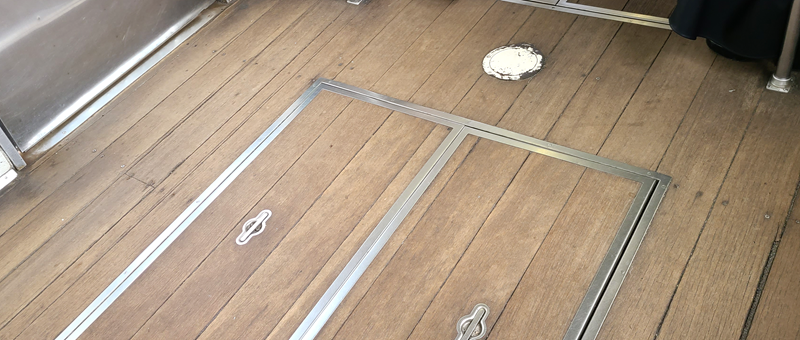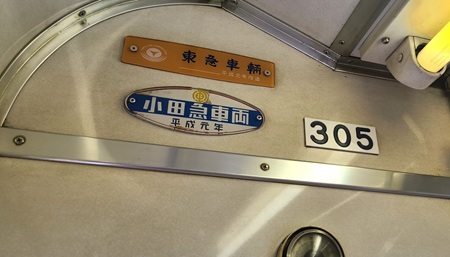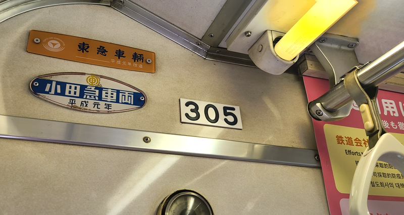 The Enoden currently operates six types of trains: the 500 series, 300 series, 1000 series, 2000 series, 10 series, and 20 series. Among the trains still in service, the 300 series is the oldest, and currently, only one set—Car No. 305 and Car No. 355—is in operation. These two cars were built in 1960 (the 35th year of the Showa era), which makes them 62 years old this year. It might be hard to tell from the outside, but the floors inside are made of wood. Wood! Be sure to check it out when you ride!
