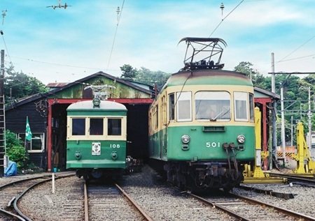 Enoshima Electric Railway’s cars 108 and 107 are affectionately known as “Tankoro” and were in operation until 1980. Currently, car 107 is on display at Kamakura Seaside Park (Yuigahama area), and car 108 is on display at Gokurakuji Depot.