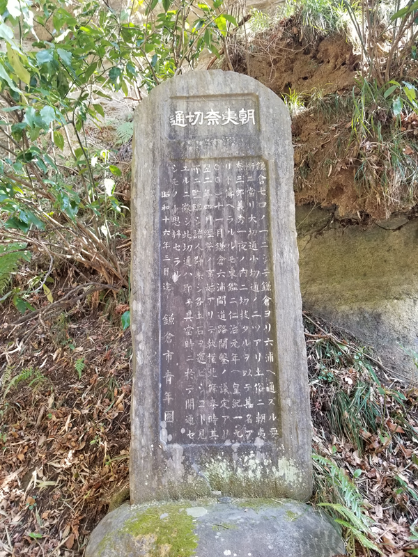 現在は「小袋坂」と書きますが、古くは巨福呂坂・巨福路坂・巨福礼坂などと表記されていました。現在は通り抜けできませんが、江戸時代の庚申塔や道祖神が残る国指定史跡です。