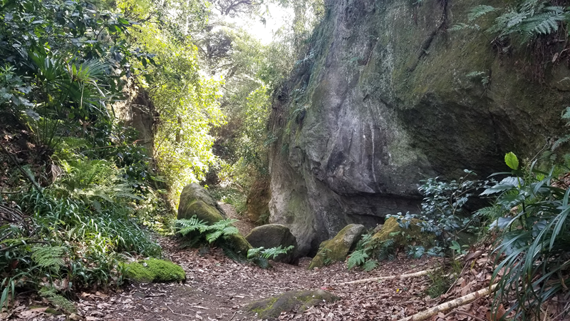 朝夷奈切通は、鎌倉七切通の中で最も古道の面影をよく残す国指定史跡です。鎌倉と六浦(現在の横浜市金沢区)を結ぶことから「六浦口」とも呼ばれ、鎌倉東側防衛の要所でした。
