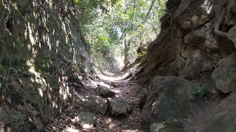 そのため、人や物資の往来のために山の稜線を切り開いて道を作りました。