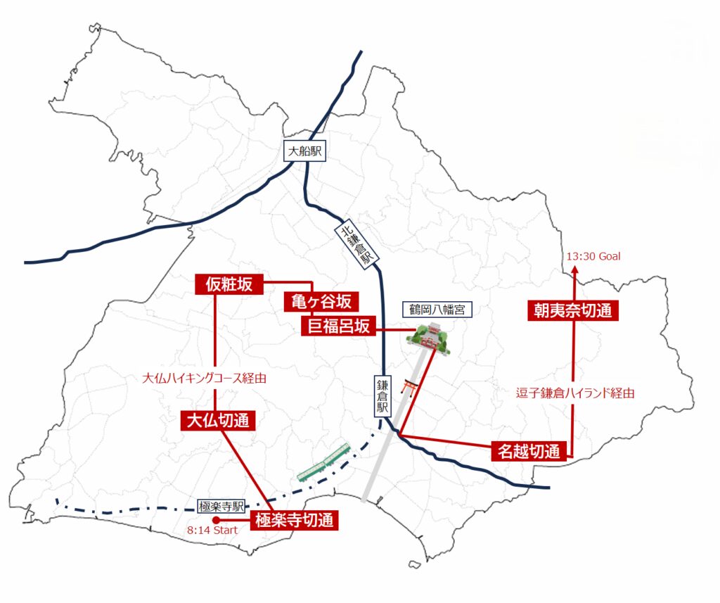 鎌倉時代、この道は急峻で通行が困難だったため、三代執権・北条泰時が改修を命じたことが『吾妻鏡』に記されています。また、1333年の新田義貞の鎌倉攻めでは、堀口貞満の軍がここを突破して鎌倉に攻め入りました。なお、鶴岡八幡宮西側から北鎌倉へ抜ける現在の道路は、明治19年(1886年)に開かれたものです。