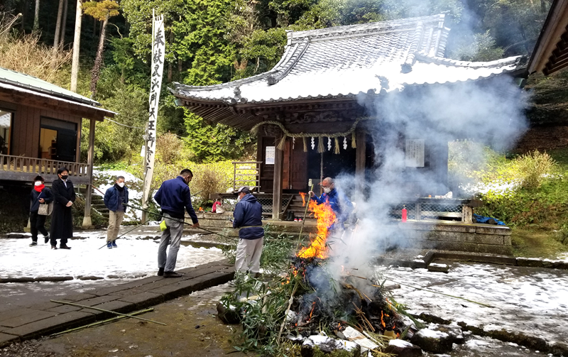 神事が終わると、どんと焼きが行われますので、お正月の松飾などを持参して焼いてもらうのも良いと思います。