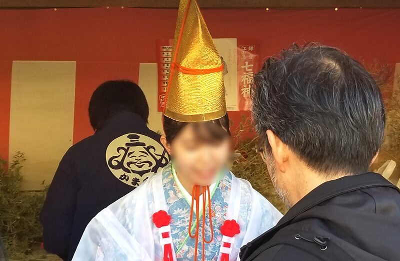 夷神は源頼朝によって幕府の守り神として祀られたとも言われており、「初えびす」「本えびす」では、福娘から福銭や御神酒が振る舞われ、参拝者に幸運をもたらします。