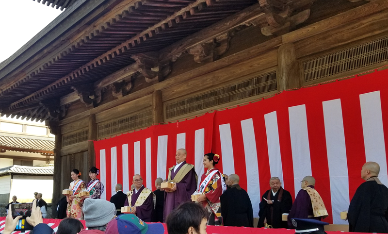 江戸芸かっぽれ豊年斎五代目櫻川ぴん助社中かっぽれが奉納された後、建長寺法堂にて豆まきが行われます。福豆をゲットするとお土産と交換できます。