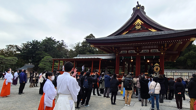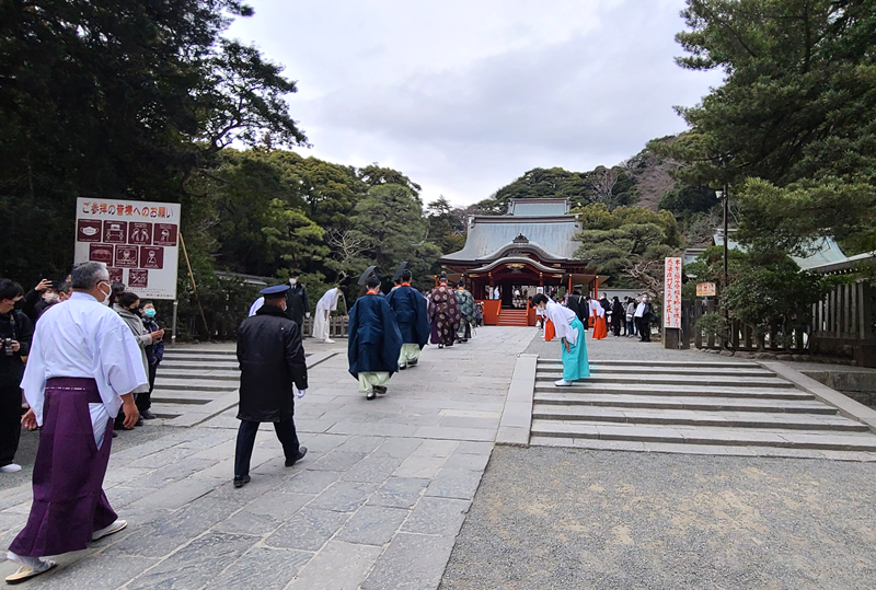 12:20頃に鶴岡八幡宮について整理券をゲット!13時に社務所から神職が出てきて、本殿に向かいます。