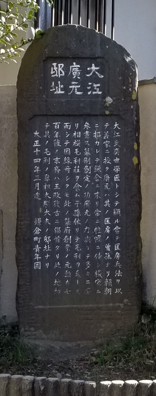 明王院の裏手には大江広元の墓と言われている五層塔がありますし、ちょうど明石橋の先ぐらいに大江広元邸跡地という石碑もあります。