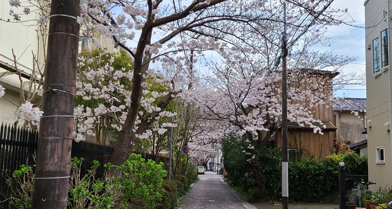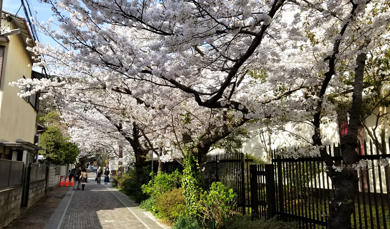 鶴岡八幡宮方面から白旗神社・法華堂に行く道は桜の季節にはとてもきれいな道になります。鎌倉のなかでも屈指の桜ポイントだと思いますので、ぜひ足を運んでみてください。