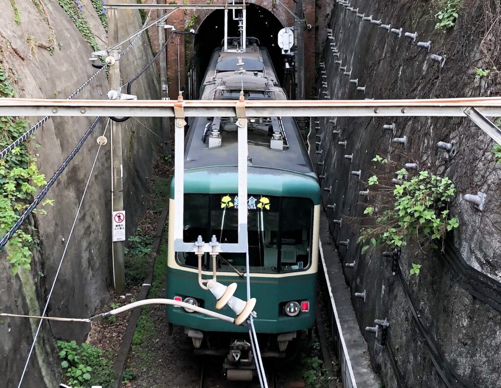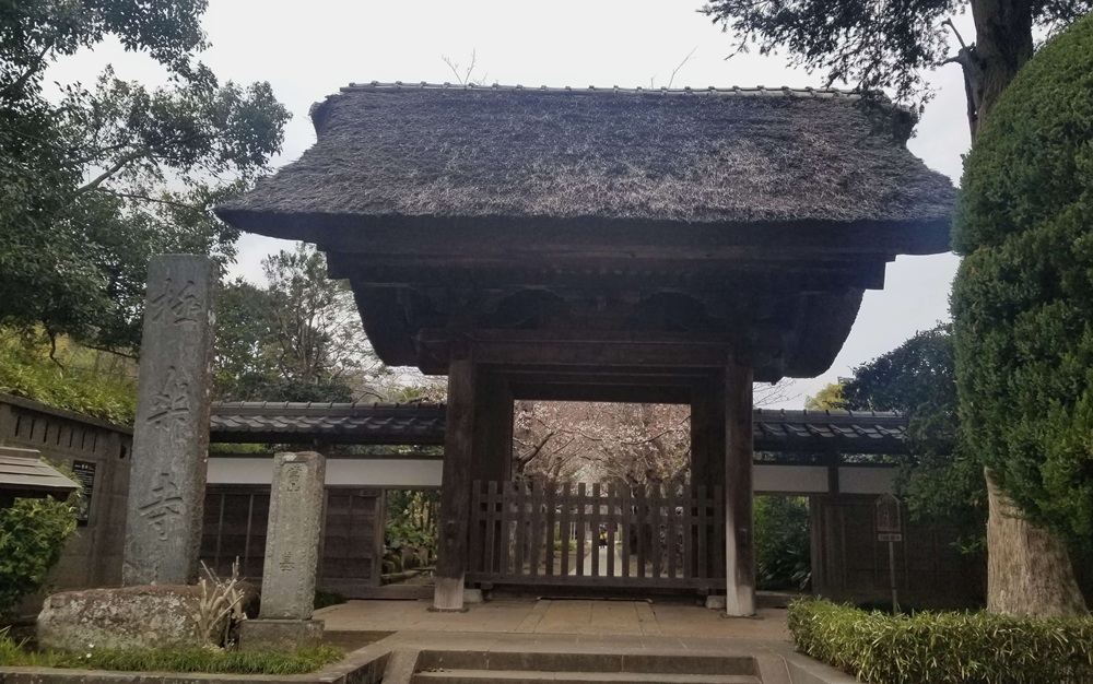 江ノ電極楽寺駅(鎌倉駅から4つ目)下車 目の前です(ぐるっと回ります)