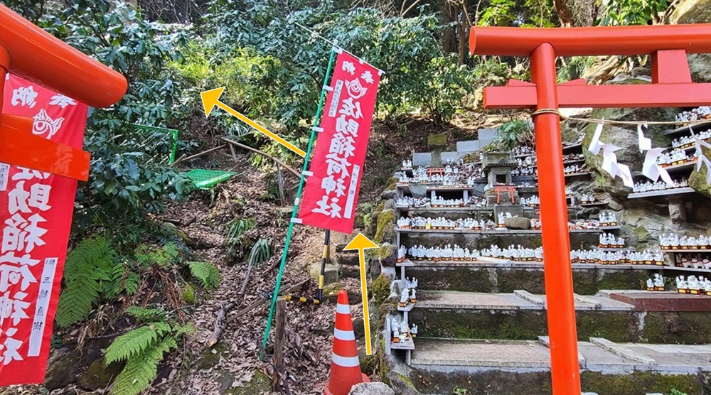 佐助稲荷神社本殿の横から大仏ハイキングコースに抜ける道がありますが、そこも通行止めになってしまいましたが、今ではだいぶ整備されています。