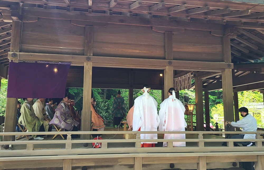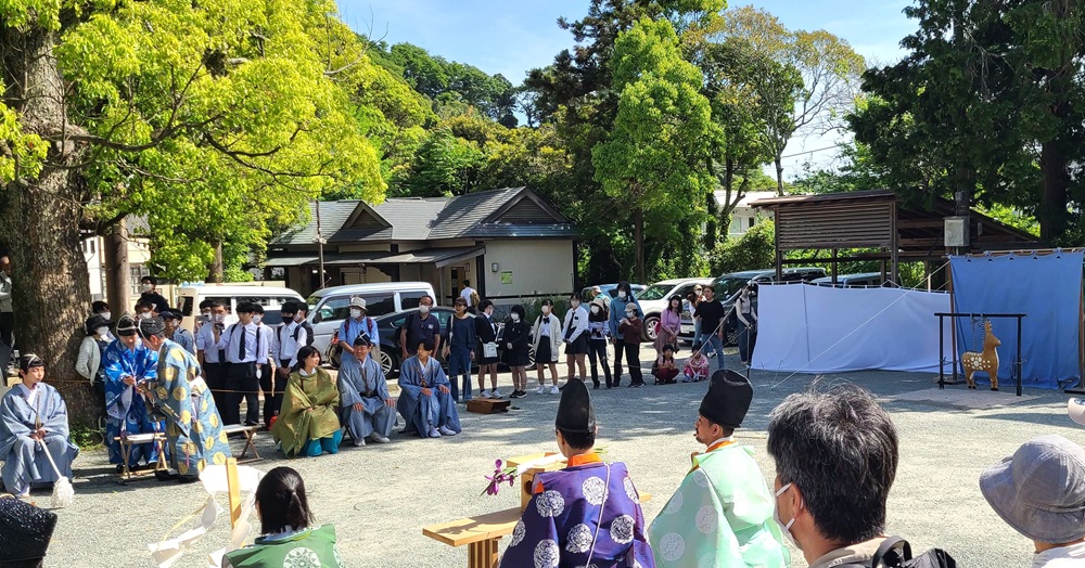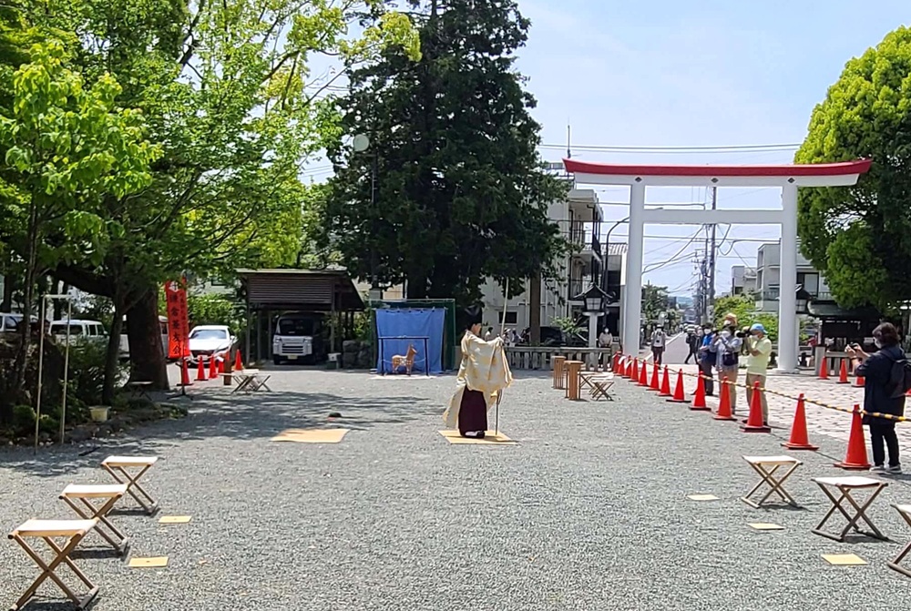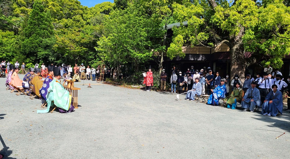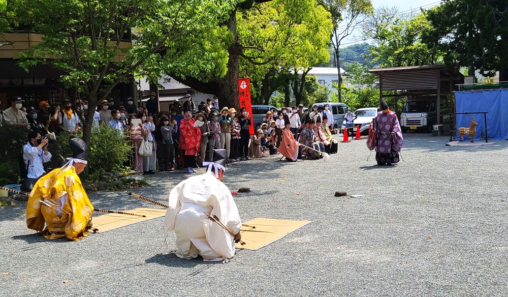 13時前にほら貝の合図と共に草鹿神事が始まります。