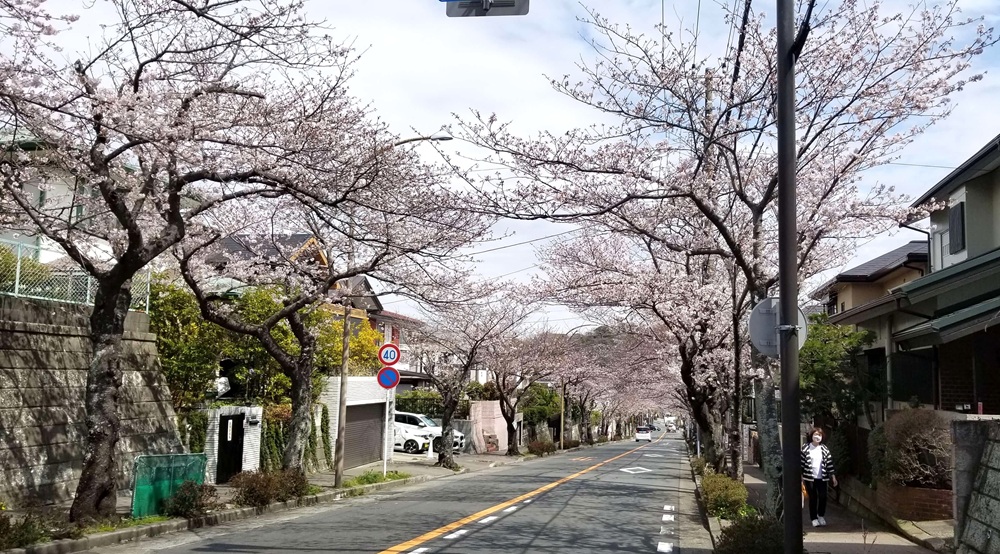 In the residential areas of Jōmyō-ji in Kamakura and Hisaki Highland in Zushi, there are streets lined with cherry trees. Walking there during full bloom is an amazing experience. You can enter from either the Jōmyō-ji side or the Hisaki Highland side.