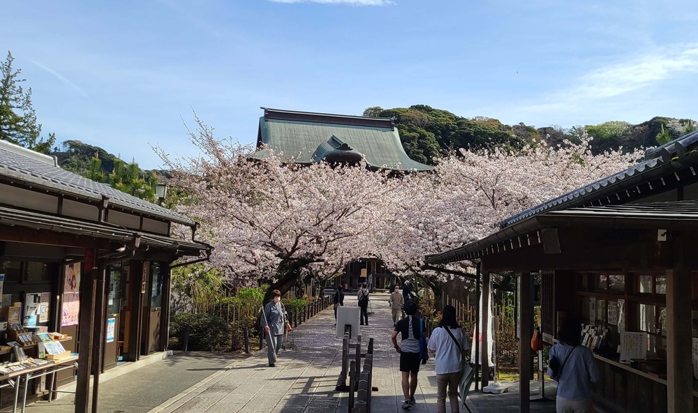 Exit Kamakura Station East Gate and head toward Hongaku-ji Temple. After enjoying the cherry blossoms there, continue to Myōhon-ji Temple for more cherry blossom viewing. From there, take a leisurely walk toward Kōmyō-ji Temple, enjoying the sights of Kamakura along the way.