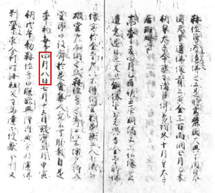 The origin of Kanbutsue in Japan can be found in the Nihon Shoki (Chronicles of Japan).