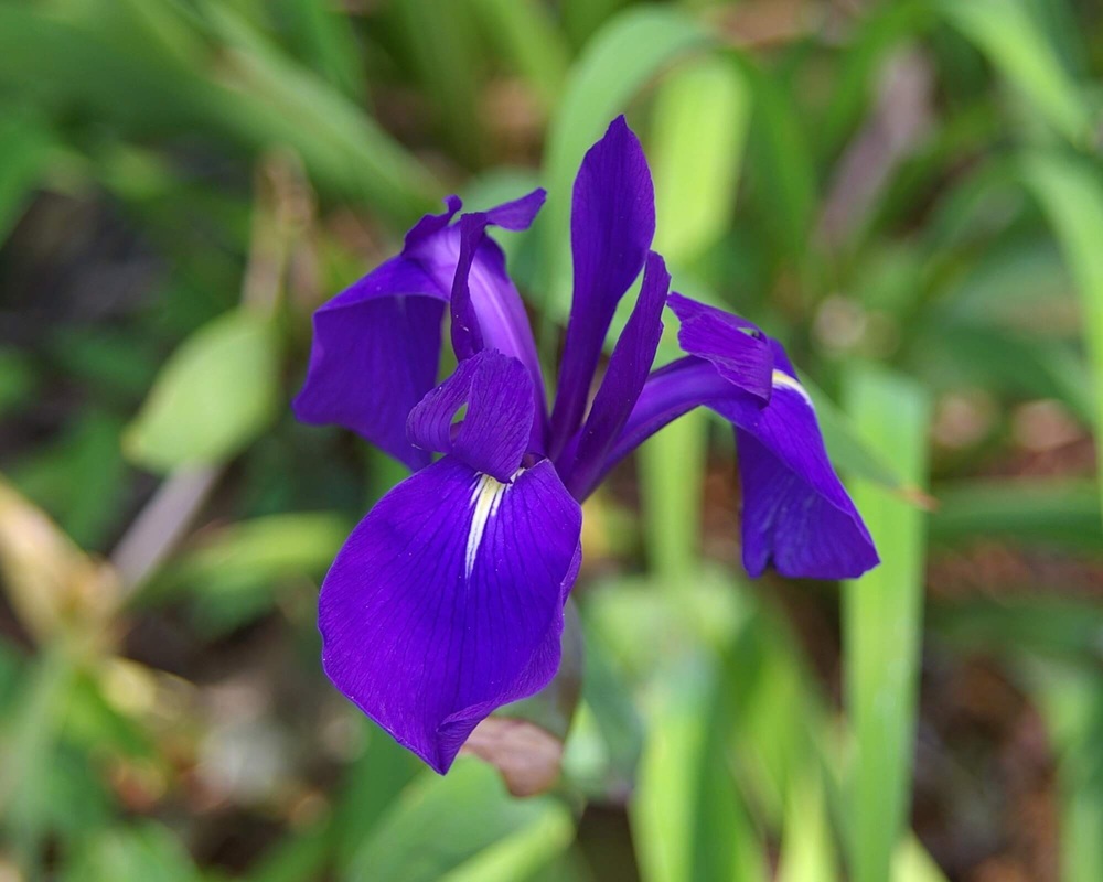 Kakitsubata (Iris laevigata) is also a member of the iris family. It has a distinctive white marking shaped like the character “ノ” at the base of its petals. Because it thrives in wetlands and waterside environments, if you see an iris growing near water, it is very likely to be kakitsubata.