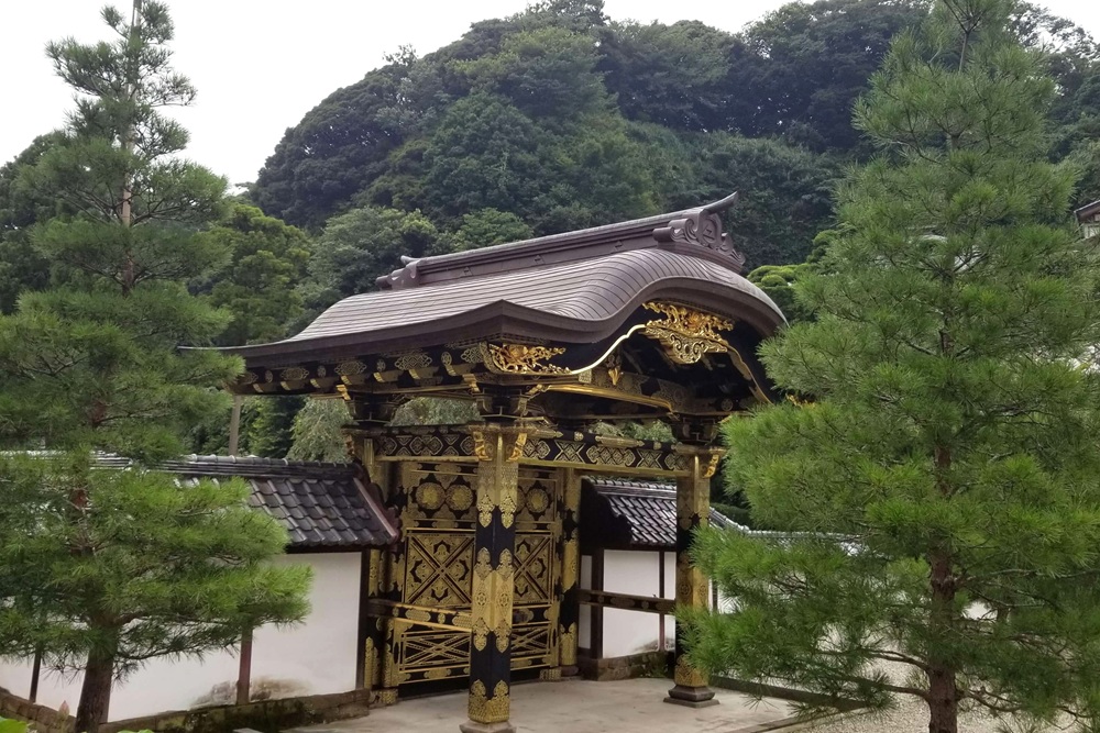 A statue of the Buddha is enshrined in front of the main hall, so you can pay your respects and pour sweet tea (amacha) over it.